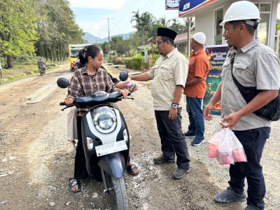 Dengan senyum ramah, para pesilat menyapa pengendara dan pejalan kaki yang melintas di sekitar kawasan tersebut. Paket takjil sederhana berisi makanan dan minuman berbuka puasa dibagikan kepada masyarakat, menghadirkan kehangatan di tengah hiruk-pikuk aktivitas masyarakat menjelang magrib.